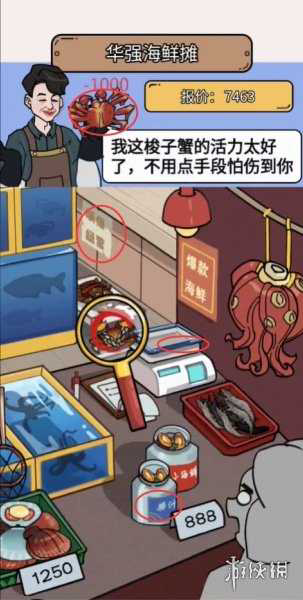 《疯狂爆梗王》华强海鲜摊攻略[玩转游戏]疯狂爆梗王中华强海鲜摊有多处疑点 这些疑点大多数是危害食品 需要玩家帮助他识别这些疑点之处 顺便给老板的价格砍一刀 那么以下就为大家分享华强海鲜摊攻略内容 疯狂爆梗王攻略大全 疯狂爆梗王华强海鲜...