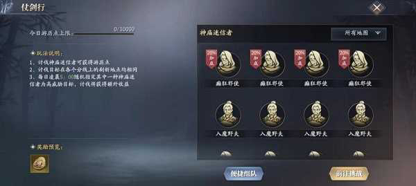 庆余年手游仗剑行玩法攻略仗剑行是庆余年手游中的一个特殊玩法 很多玩家都想要知道庆余年手游仗剑行怎么玩 游戏宝小编为大家带来庆余年手游仗剑行玩法攻略 庆余年手游仗剑行玩法攻略 1 仗剑行为大世界刷怪玩法 玩家可以单人或组队进行挑战 神庙...