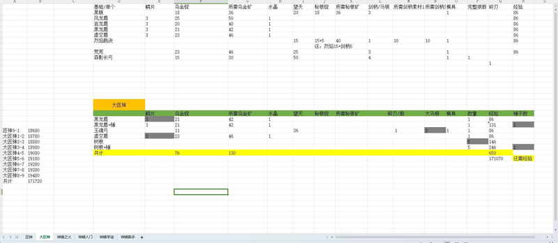 冰原守卫者经验分享-工匠表格(匠神-神铸熟手)冰原守卫者 经验分享 工匠表格 匠神 神铸熟手 如下 为大家提供一个方便计算每个阶段工匠等级需要的素材 经验的表格 表格含公式 熟悉 EX 操作的朋友应该能轻易上手 表格是由匠神阶段开始的...