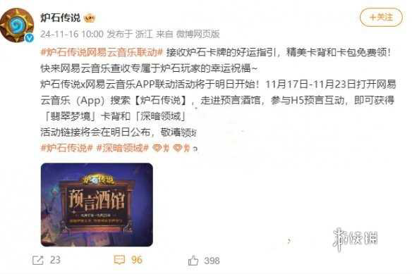 炉石传说网易云音乐联动活动玩法介绍「必看」炉石传说网易云音乐联动活动即将上线 玩家可通过参与活动获得翡翠梦境卡背和深暗领域卡牌包等奖励 有很多小伙伴不知道怎么玩 接下来就让小编带大家一起来看看吧 攻略大全 炉石传说网易云音乐联动怎么玩...