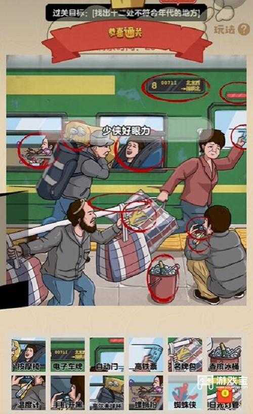 老六爱找茬绿皮火车答案攻略老六爱找茬绿皮火车这个关卡需要玩家在场景中找出十二处不符合场景年代的地方 很多玩家不知道这些地方都在哪里 游戏宝小编带来老六爱找茬绿皮火车答案攻略 希望可以帮到大家 老六爱找茬绿皮火车答案攻略 1 按摩椅 2...