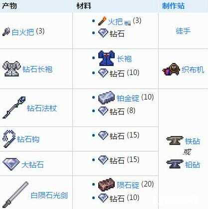 泰拉瑞亚钻石有什么用「超实用」在泰拉瑞亚游戏中 钻石是众多道具中的一种 那么泰拉瑞亚钻石有什么用呢 很多的小伙伴都不太清楚 所以小编就为大家带来了泰拉瑞亚钻石作用一览 让我们一起去看看吧 泰拉瑞亚钻石有啥用 钻石可以制作白火把 钻石长...