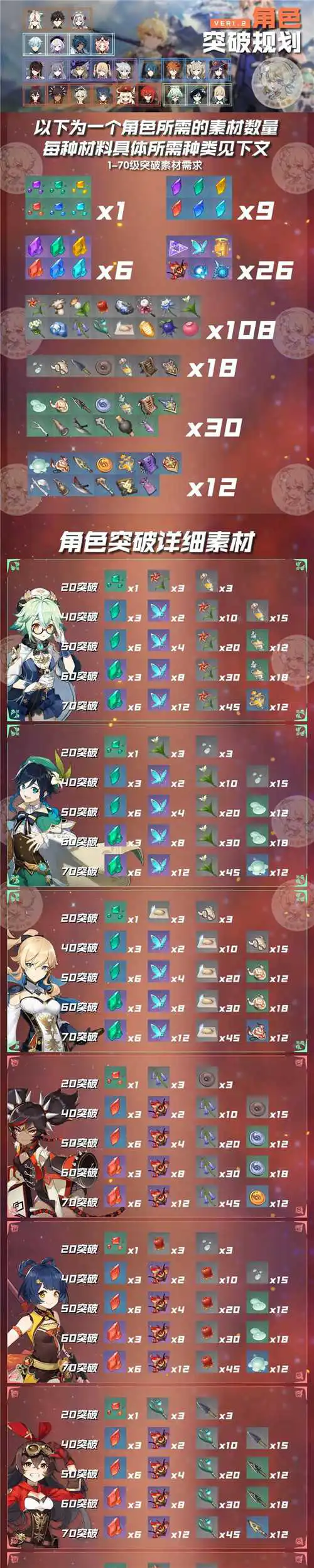 原神全角色突破所需材料一览原神角色突破要哪些材料 在游戏中培养一个角色需要花费大量的材料 每一个角色突破所需的素材都有所不同 由于资源有限 大家要学会素材规划 下面带来角色突破素材需求一览 希望对各位有所帮助 全角色突破素材需求一览 ...