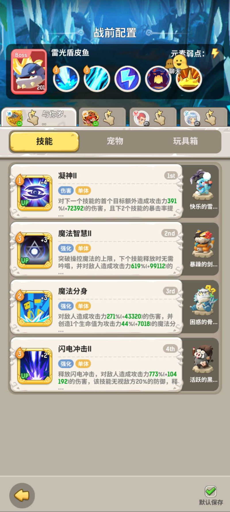 不休的乌拉拉[岁岁]斗刺法德——嘀嗒甬道不休的乌拉拉 岁岁 斗刺法德 嘀嗒甬道如下 九区最低战力通关 本帖由于是最低战力通关所以一切 boss 均有最优解 极限时间 闪光雷鲸鱼 62 秒 雷动丸 74 秒 雷霆剑龙 64 秒 雷光盾皮...