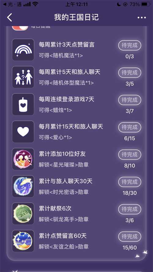 光遇小精灵王国日记任务完成攻略光遇小精灵王国日记任务怎么做 游戏里面的小精灵更新了一个王国日记活动任务 完成之后能够获得魔法 蜡烛和勋章奖励 下面带来光遇小精灵王国日记任务一览 希望对各位有所帮助 小精灵王国日记活动任务 1 首先进入...
