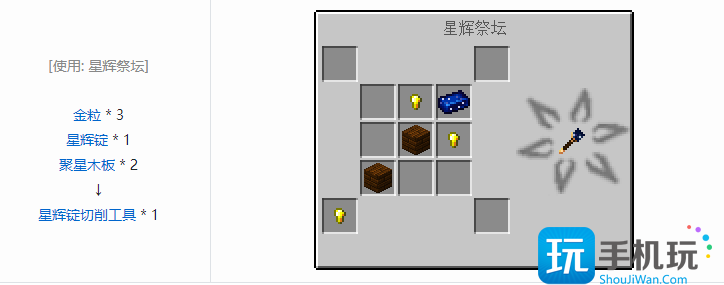 我的世界星辉锭切削工具怎么获得-星辉锭切削工具获取方法我的世界星辉锭切削工具可以通过合成的方法来获得 星辉锭切削工具只能在星辉祭坛制作 制作需要 3 个金粒 1 个星辉锭和 2 个聚星木板 星辉锭切削工具可以将星辉锭处理成星尘 或者切...