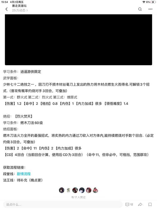 暴走英雄坛玄冥坊燃木刀法攻略疑似被盗[玩转游戏]暴走英雄坛 玄冥坊燃木刀法攻略疑似被盗如下 我正在努力改进画质问题 玄冥坊成员 酒酒 与 2021 年 4 月 1 日所编写帖子燃木刀法攻略疑似被盗 我们正在进行妥善处理 希望大家尊重原...