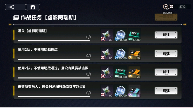 交错战线碎星虚影阿瑞斯交错战线 碎星虚影阿瑞斯如下 碎星虚影的作战任务都是这五个 这些任务可以分开一个一个打 通关也可以借助战的 这里还可以用来刷好感度 虽然没有经验 但是有好感 单队 6 步通关 以上就是交错战线碎星虚影阿瑞斯相关内容