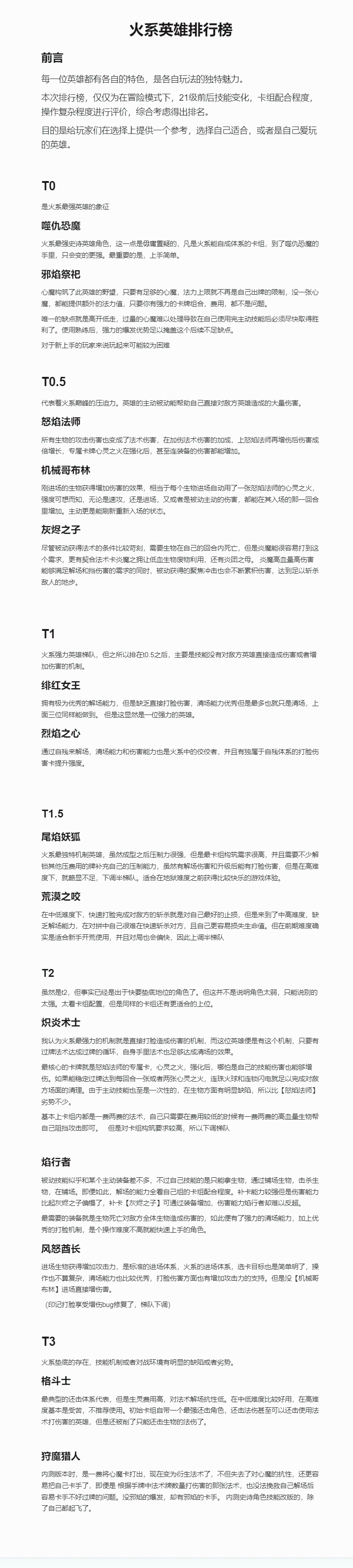 恶魔秘境【秘境攻略】火系英雄梯度参考表[亲测有效]恶魔秘境 秘境攻略 火系英雄 梯度参考表如下 腾讯文档 火系英雄梯队 恶魔秘境 攻略组 以上就是恶魔秘境 秘境攻略 火系英雄梯度参考表相关内容