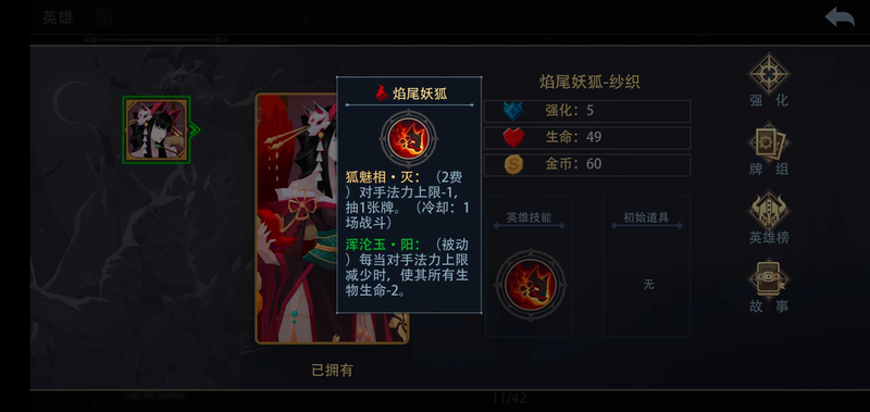 恶魔秘境0费斩杀——烈焰妖狐攻略「必看」恶魔秘境 0 费斩杀 烈焰妖狐攻略如下 分享一个很简单粗暴的英雄 适合新手 成型后很稳定 基本满血吊打所有怪 除了瘟疫 最关键的一点是 长得好看 主要思路是用技能和减上限的卡 让对方保持在零费 ...