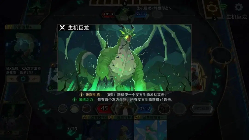 恶魔秘境周末活动-光明试炼(3.17)生机巨龙[玩转游戏]恶魔秘境 周末活动 光明试炼 3 17 生机巨龙如下 BOSS 介绍 生机巨龙 技能介绍 团结之力 详情见下图 强化技能介绍 打掉 150 血后 无限生机 0 费 随机使一个友...