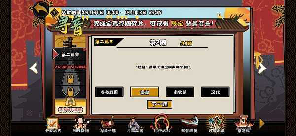 无悔华夏寻音之旅第二篇章问题答案大全寻音之旅是无悔华夏近期推出的全新福利活动 很多玩家都想要知道无悔华夏寻音之旅第二篇章问题答案是什么 游戏宝小编为大家带来无悔华夏寻音之旅第二篇章问题答案大全 无悔华夏寻音之旅第二篇章问题答案大全 1...