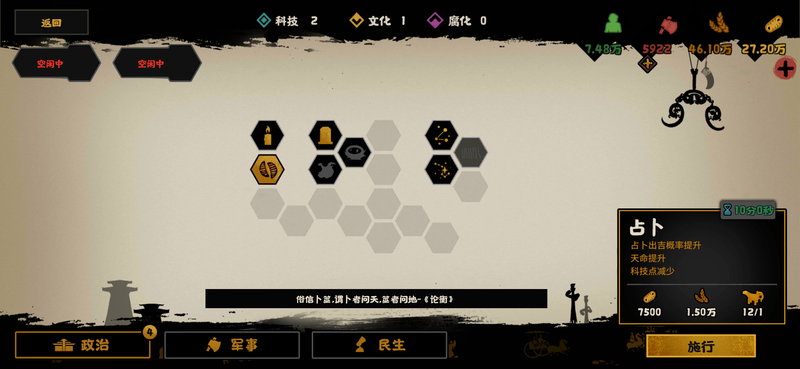 无悔华夏《无悔华夏:如何玩转夏商周天命占卜》无悔华夏 无悔华夏 如何玩转夏商周天命占卜 如下 一 什么是天命和占卜 天命和占卜是无悔华夏中夏商周主线 剧本特有的机制 使用三个 醴 可以选择 一项类型得资源或者数值 粮食 军心 天命 钱...