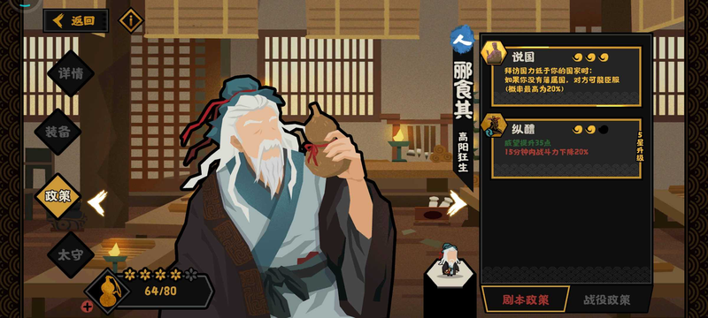 无悔华夏半攻略导向-太守技能无悔华夏 半攻略导向 太守技能如下 作为一个不怎么肝的贫民玩家 一个多月时间也算点亮了大部分图鉴了 说起名臣强度主要都是评价政策强度和政策消耗 缺马和不缺马的韩信两个强度 其次是四维数值 说起太守技能和家臣...