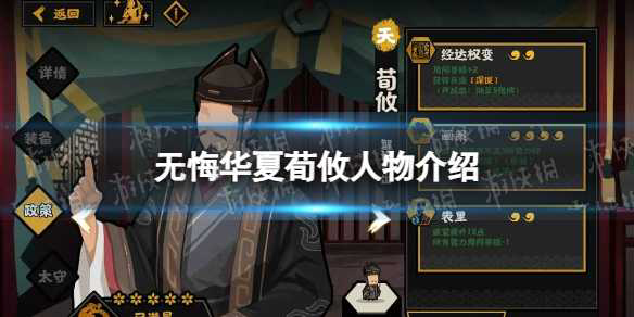 《无悔华夏》荀攸怎么样 荀攸技能介绍[玩转游戏]荀攸是无悔华夏汉末三国剧本的天级名臣 是荀彧的堂侄 曹操的重要谋士 那么无悔华夏荀攸怎么样呢 下面就让小编为大家介绍一下吧 无悔华夏荀攸人物介绍 名臣技能 经达权变 画策 表里 愿辅明公...
