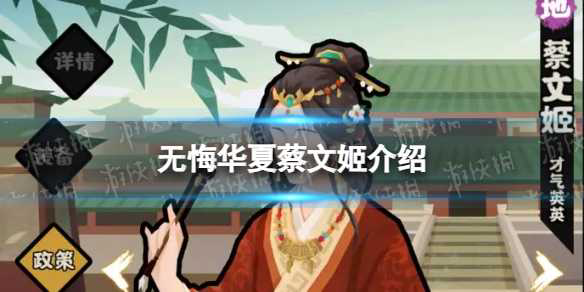 《无悔华夏》蔡文姬怎么样 蔡文姬技能介绍蔡文姬是无悔华夏汉末三国剧本的天级名臣 东汉末年女性文学家 文学家蔡邕之女 那么无悔华夏蔡文姬怎么样呢 下面就让小编为大家介绍一下吧 无悔华夏蔡文姬人物介绍 名臣技能 才辩 悲歌 陈留蔡家女 博...