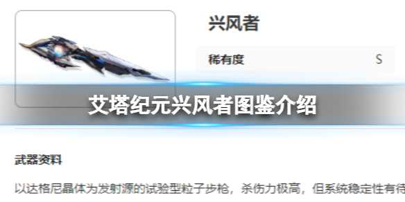 艾塔纪元兴风者图鉴介绍艾塔纪元兴风者图鉴介绍 以达格尼晶体为发射源的试验型粒子步枪 杀伤力极高 但系统稳定性有待提升的武器 下面小编给大家带来艾塔纪元兴风者图鉴介绍 有需要的小伙伴一起来看看吧 攻略大全 艾塔纪元兴风者图鉴介绍 一 基...