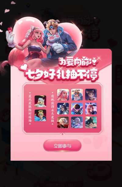王者荣耀为爱向前冲活动怎么玩_为爱向前冲抽永久皮肤活动介绍王者荣耀为爱向前冲活动怎么玩 为爱向前冲活动参加地址是什么 为爱向前冲是王者荣耀官方为大家上线的一个七夕 活动 奖励丰富永久皮肤等你来抽 下面小编就为大家带来关于王者荣耀为爱向...