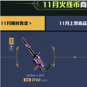 CF永久加特林H怎么得CF 永久加特林 H 怎么得 加特林 H 是 CF 中最新上线的一款装备 输出强力 弹量充足 那要怎么刷永久的呢 下面跟着小编一起看看吧 CF 永久加特林 H 获得攻略 在 11 月中 玩家们可以花费 2700 ...