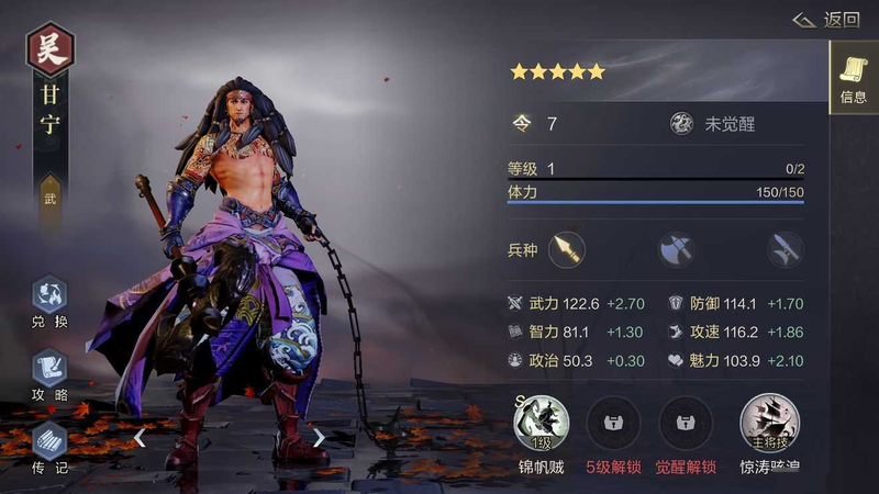 三国志战略版甘宁值得培养吗_三国志战略版甘宁战法阵容搭配攻略三国志战略版甘宁值得培养吗 在三国志战略版中 甘宁是一位强力的输出武将 在属性成长上 甘宁拥有高额的武力属性成长 战斗时可以依靠高额的会心打出爆发伤害 下面小编就为大家带来了...
