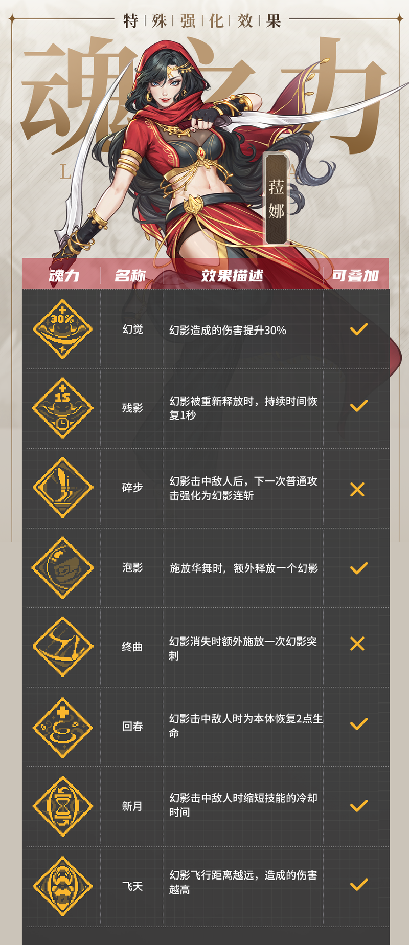 战魂铭人关于新角色菈娜个人道魂推荐「超实用」战魂铭人 关于新角色菈娜个人道魂推荐如下 经过我的不断换道魂开局尝试摸索 个人觉得这角色还是很吃魂力的 开局选好道魂能舒服很多 先说下特殊词条 每个幻影增加普攻伤害 每个幻影额外增加 50 ...