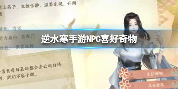 逆水寒手游NPC喜好奇物大家好 今天来为大家解答逆水寒往事录好感提升方法这个问题的一些问题点 包括逆水寒好感度满了怎么办也一样很多人还不知道 下面小编为大家带来了解答 想了解的玩家快来看看吧 逆水寒手游 NPC 喜好奇物 1 叶雪青 ...
