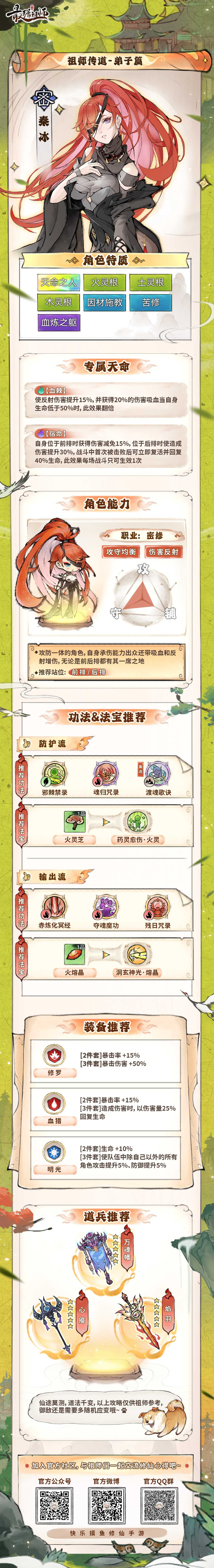 《最强祖师》秦冰养成攻略「别错过」最强祖师 是一款能随机生成各种有趣弟子 并组建弟子团生产 战斗的修仙模拟经营手游 游戏中秦冰是性价比最高氪金前排 顶级战斗弟子 前中后期全方位制霸 PVE 和 PVP 强度都极高 又肉又输出并且多灵根...