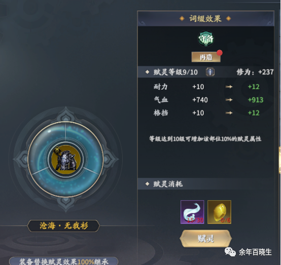 庆余年【新版本】赋灵攻略「超实用」庆余年 新版本 赋灵攻略如下 上周新版本出的赋灵系统 你们研究明白了吗 下面我来说说我的个人理解 赋灵当装备到达一定的等级后开启赋灵效果 装备等级 110 级开启 能增加人物的三个属性 如下图 金色和...
