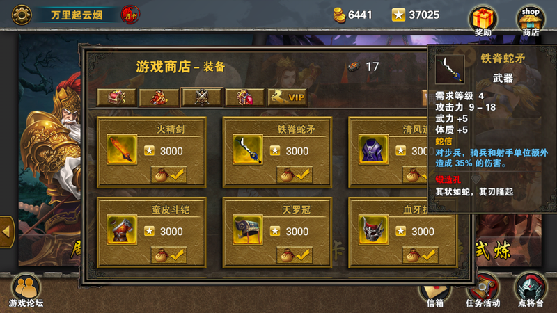 策马三国志娱乐图·挑战·念奴娇一暗潮涌动(图文)策马三国 志娱乐图 挑战 念奴娇一暗潮涌动 图文 如下 英雄 出装 朱雀羽扇 天玄道袍 清灵头 万灵头 虎鞋 招财猫 太平要术 龙佩 卡片出装 长枪 精锐步兵 金币卡 铁矿卡 打法思路 ...