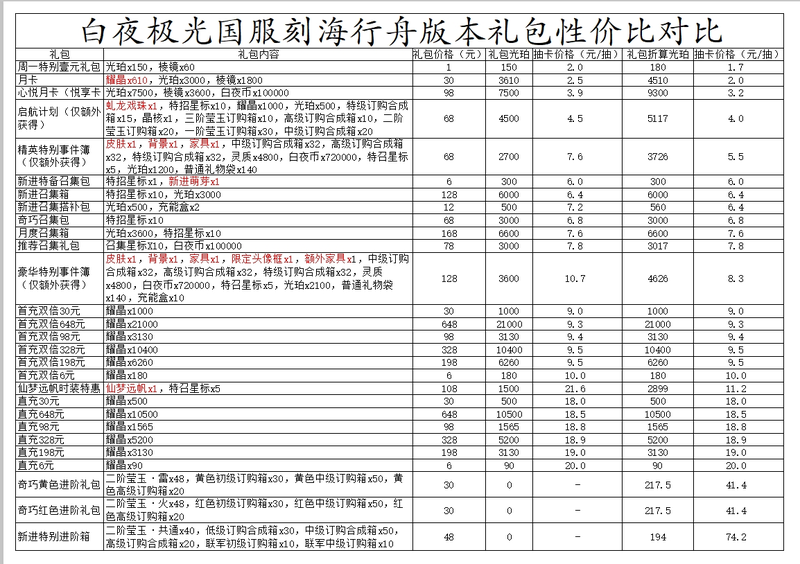 白夜极光【萌新指北】各礼包性价比对比[亲测有效]白夜极光 萌新指北 各礼包性价比对比如下 以上就是白夜极光 萌新指北 各礼包性价比对比相关内容