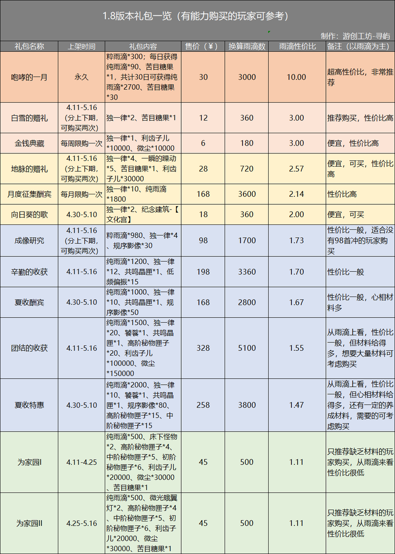 重返未来:19991.8版本可白嫖纯雨滴一览、礼包性价比来袭!重返未来 19991 8 版本可白嫖纯雨滴一览 礼包性价比来袭 如下 司辰们好呀 今天给大家带来 1 8 版本可白嫖纯雨滴一览以及礼包的性价比一览 须知 签到 是指活动的签...