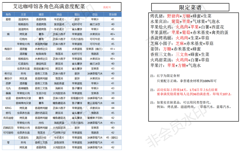 幻塔艾达咖啡馆各角色高满意度配菜整理一览「别错过」幻塔 艾达咖啡馆各角色高满意度配菜整理一览如下 首先要强调的是 这次艾达咖啡馆活动是在 1 月 6 日早上 5 点结束 每天 13 点有新的客人 实际上只有 14 天的时间 不是 15...