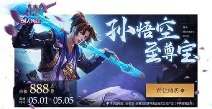 2020王者荣耀孙悟空至尊宝什么时候返场2020 王者荣耀孙悟空至尊宝什么时候返场 五五开黑节就要来了 在这个活动中游戏将会上线新皮肤和返场皮肤 上次错过孙悟空至尊宝皮肤的小伙伴这次千万不要错过了 那么跟着小编来看看什么时候返场吧 2...