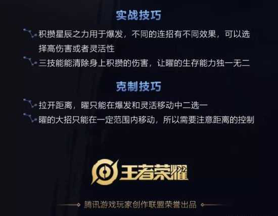 王者荣耀曜实战怎么打「必看」王者荣耀曜实战怎么打 王者荣耀曜是稷下星之队的队长 其实力不容小觑 那么在实战中要怎么使用呢 想必大家都很好奇 几天就跟小编来看看吧 王者荣耀曜实战技巧 连招技巧 团战 逃生 追击各有套路 在星辰之力充足的...