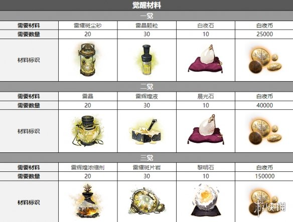 《白夜极光》基汀三觉材料一览 基汀精三材料白夜极光基汀三觉要什么材料 在游戏中每位角色的觉醒材料都不一样 不少小伙伴想知道基汀三觉需要的材料 下面小编为大家带来了白夜极光基汀三觉材料一览 来看看吧 白夜极光基汀三觉材料一览 三觉 雷辉...