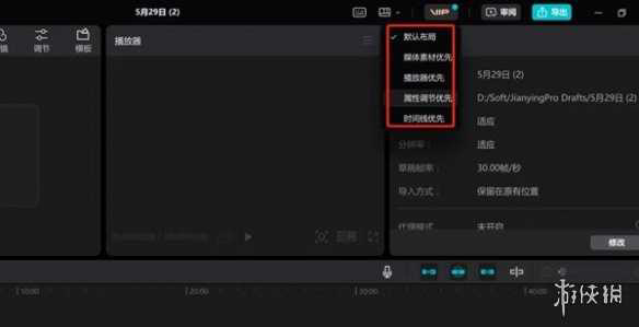 剪映界面布局设置方法剪映界面布局怎么设置是很多新手用户很想了解的一个问题 很多新手由于第一次接触剪映 不知道怎么布局页面 下面小编就给大家带来了剪映界面布局的设置方法 剪映界面布局怎么设置 1 首先打开剪映 然后开始创作 接着在右上角...