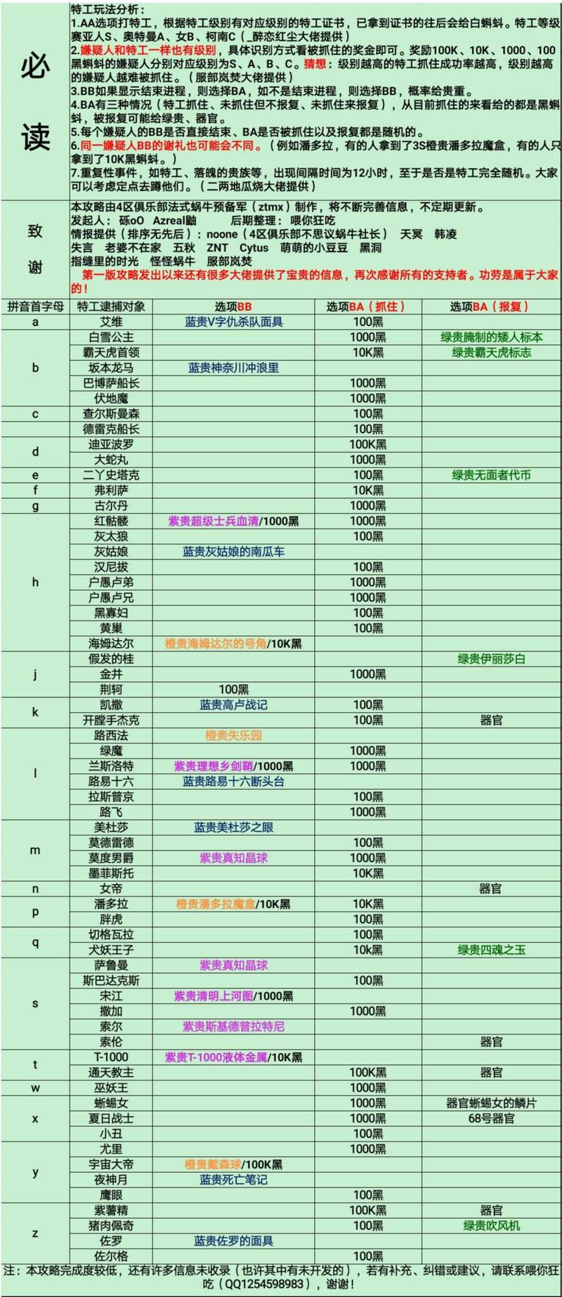 最强蜗牛特工玩法分析 最强蜗牛特工捕捉对象汇总攻略「必看」今天小编为大家带来的是最强蜗牛游戏中特工玩法的介绍以及分析 下面我们一起来看一下特工捕捉对象的选项汇总介绍吧 具体内容如下