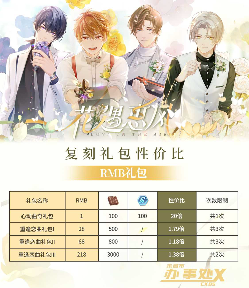 未定事件簿【花遇惠风•复刻】礼包性价比一览未定事件簿 花遇惠风 复刻 礼包性价比一览如下 千 呼万唤始出来 花遇惠风复刻啦 如果没有足够泪之约定兑换的话 复刻活动没有每日活动白嫖曲奇 只能通过晶片 1 1 兑换或者购买礼包 就这份礼包...