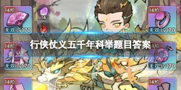 行侠仗义五千年科举题目答案[玩转游戏]行侠仗义五千年科举需要玩家回答问题 答对的越多奖励越多 下面小编为大家带来了行侠仗义五千年科举题目答案 需要的小伙伴快来看看吧 行侠仗义五千年科举题目答案 三国时期被誉为 义绝 的武将是哪位 回答...