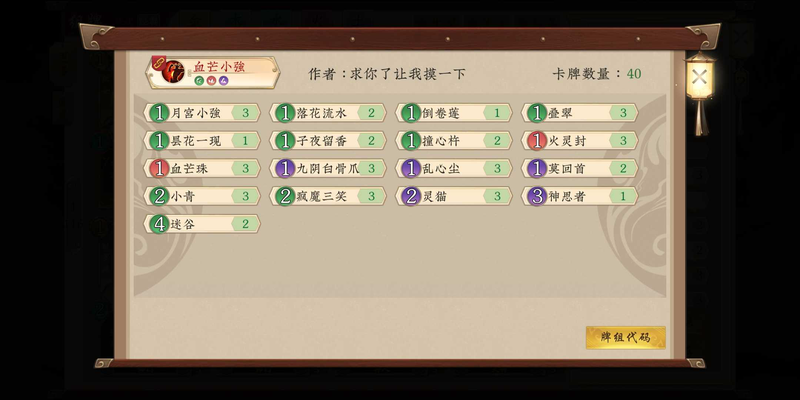 五行师血芒小强秒杀流,T2卡组娱乐上尊五行师血芒小强秒杀流 T2 卡组娱乐上尊如下 备选卡 野狐禅 天山折梅 封禅 同醉 魅惑 女娲 打法思路 开局留生灵牌和血芒珠 多余的小青和灵猫可以修了 利用白骨爪和迷谷过牌 看情况留触发 害怕火...