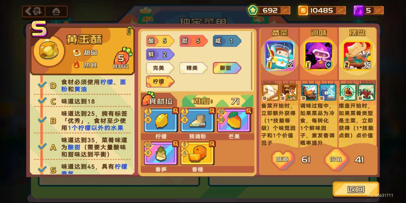 砰砰军团S级黄玉酥砰砰军团 S 级黄玉酥如下 浅发一下刚做的黄玉酥 由于需要梦魇 固定出柠檬香 所以必须要梦魇 但是梦魇的等级不需要太高 因为再高也只能吃两点味觉 且黄玉酥无法吃梦魇的一技能 升太高级没用 击剑是为了补一点价值和味觉 ...