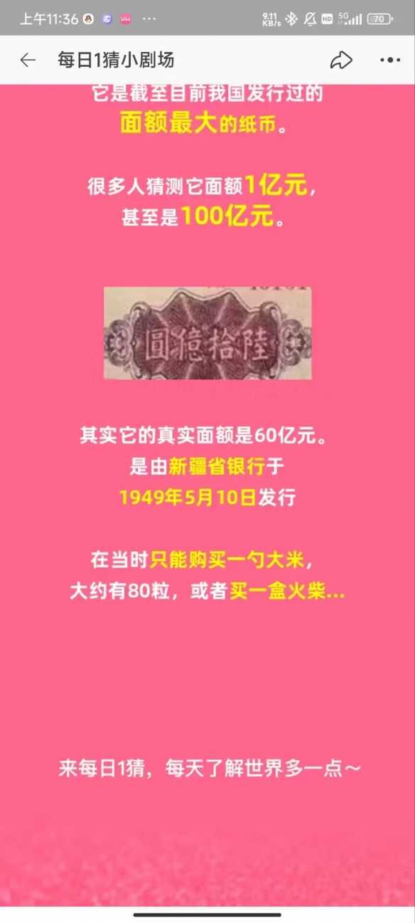 我国历史上面额最大的纸币是?淘宝大赢家今日答案12.172023 淘宝每日一猜活动 12 月 17 日的问题是 人人都是亿万 富翁 我国历史上面额最大的纸币是 不少小伙伴想知道 12 月 17 日这道题目的答案是什么 接下来就让我们一...