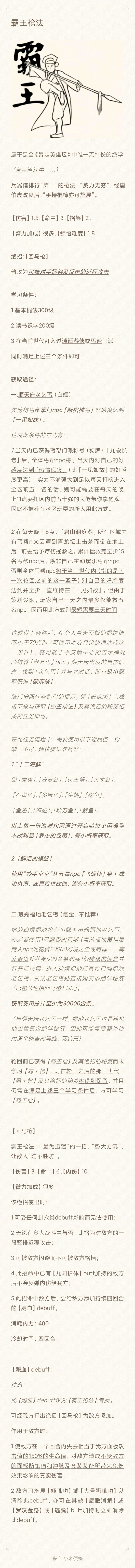 暴走英雄坛一篇霸王枪法长攻略暴走英雄坛 一篇霸王枪法长攻略如下 霸王枪法 嘛 俺不知道咋夸赞它好了 硬要夸的话 就说它 强度不输燎原枪法 吧 怀疑晓枫策划就是看棍法枪法不爽 这门绝学从 18 年推出到现在 似乎连一次增强都未曾喜提 跟...