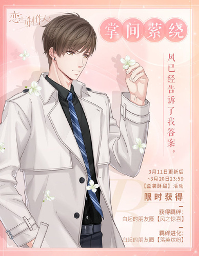 恋与制作人限定R白起掌间萦绕怎么样_白起掌间萦绕图文一览恋与制作人限定 R 白起掌间萦绕怎么样 恋与制作人即将于白色情人节到来之际 上线一张限定 R 卡白起掌间萦绕 那么这张 R 卡卡面如何呢 下面就一起来了解下吧 恋与制作人限定 R...