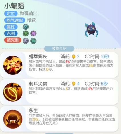 一起来捉妖小蝙蝠怎么样_一起来捉妖小蝙蝠属性技能详细分析介绍「超实用」一起来捉妖小蝙蝠怎么样 想必很多一起来捉妖的玩家都很想知道 今天就跟着小编来看看怎么解决这个问题吧 一起来捉妖小蝙蝠属性技能详细分析介绍 编号 251 属性 空 克...