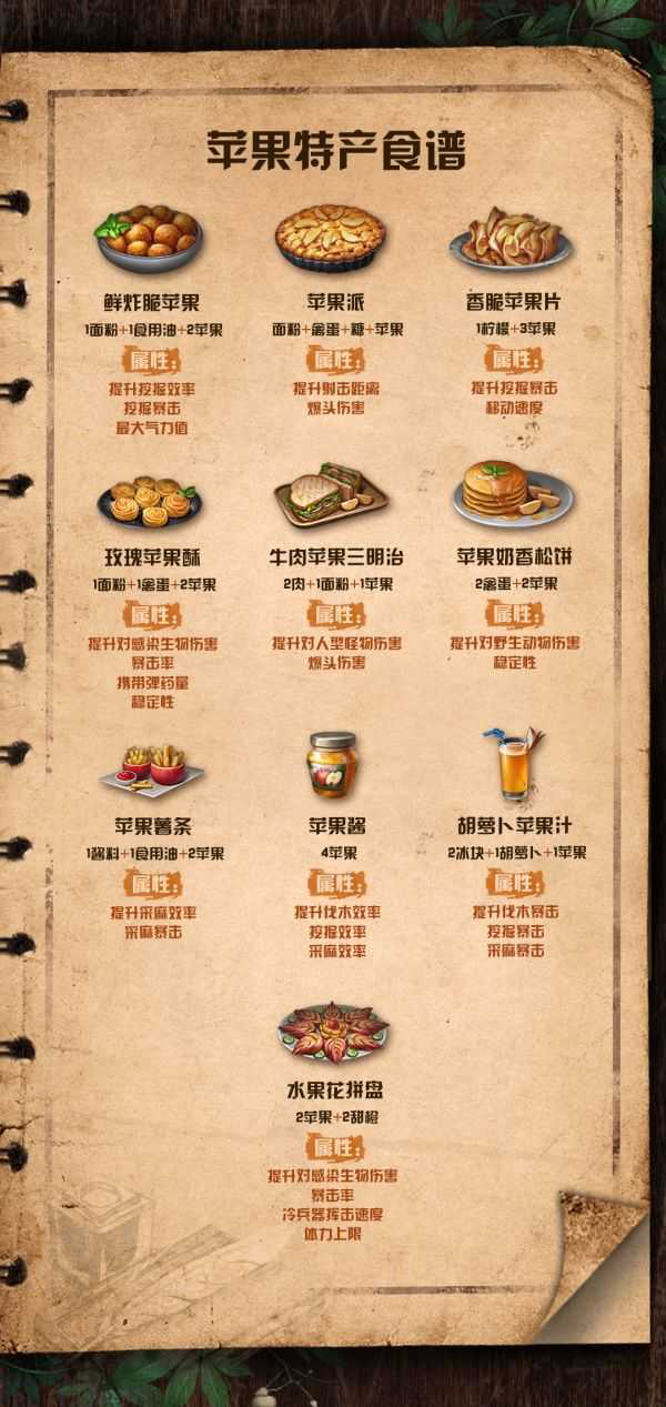 明日之后苹果食谱配方属性大全最新「必看」在明日之后中 玩家可以制作各种各样的美食 很多玩家都想要知道明日之后苹果食谱配方有哪些 游戏宝小编为大家带来明日之后苹果食谱配方属性大全最新 明日之后苹果食谱配方属性大全最新 1 鲜炸脆苹果 配...
