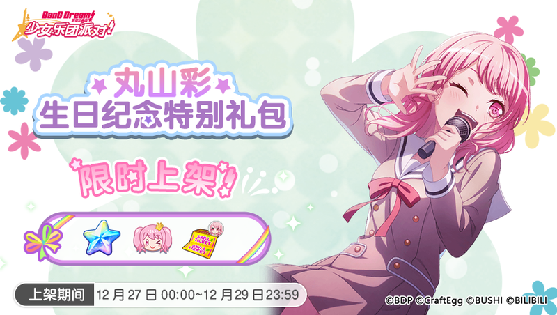 梦想协奏曲!少女乐团派对!全新「彩生日纪念特别礼包」上架!「别错过」梦想协奏曲 少女乐团派对 全新 彩生日纪念特别礼包 上架 如下 各位亲爱 的 BanG Dreamer 为庆祝彩的生日 游戏内现已上架全新生日礼包 彩生日纪念特别礼包...