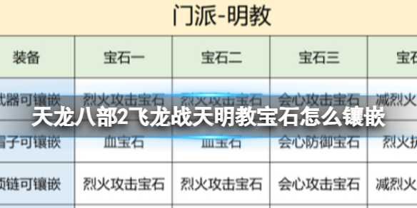 《天龙八部2飞龙战天》明教宝石怎么镶嵌 明教宝石镶嵌攻略天龙八部 2 飞龙战天明教宝石怎么镶嵌 游戏中的明教门派的宝石想要镶嵌好要怎么弄 很多玩家还不会镶嵌 下面就跟着小编一起来了解一下天龙八部 2 飞龙战天明教宝石镶嵌的攻略吧 天龙...