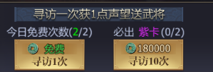 九州三国志铜钱寻访武将九州三国 志铜钱寻 访武将如下 招贤馆里最左下角是基础寻访 十连必然可以有紫色 A 卡 但每天只能两次 适合初期缺武将的时候存卡 然后每天还有几次免费的次数 记得按时来领取 毕竟白嫖的是最香的 以上就是九州三国志...