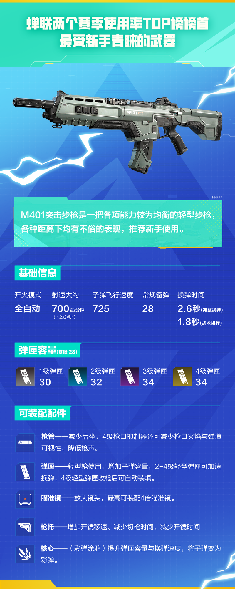 高能英雄枪王指南丨“人气王”M401突击步枪究竟有何魅力高能英雄 枪王指南丨 人气王 M401 突击 步枪究竟有何魅力如下 工欲善其事 必先利其器 欲想在能爆基地冲出重围强势登顶 一把称手的武器是关键 每期 枪王指南 我们都将给大家带...